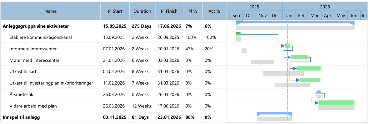 Kommantarer frå anleggsgruppa