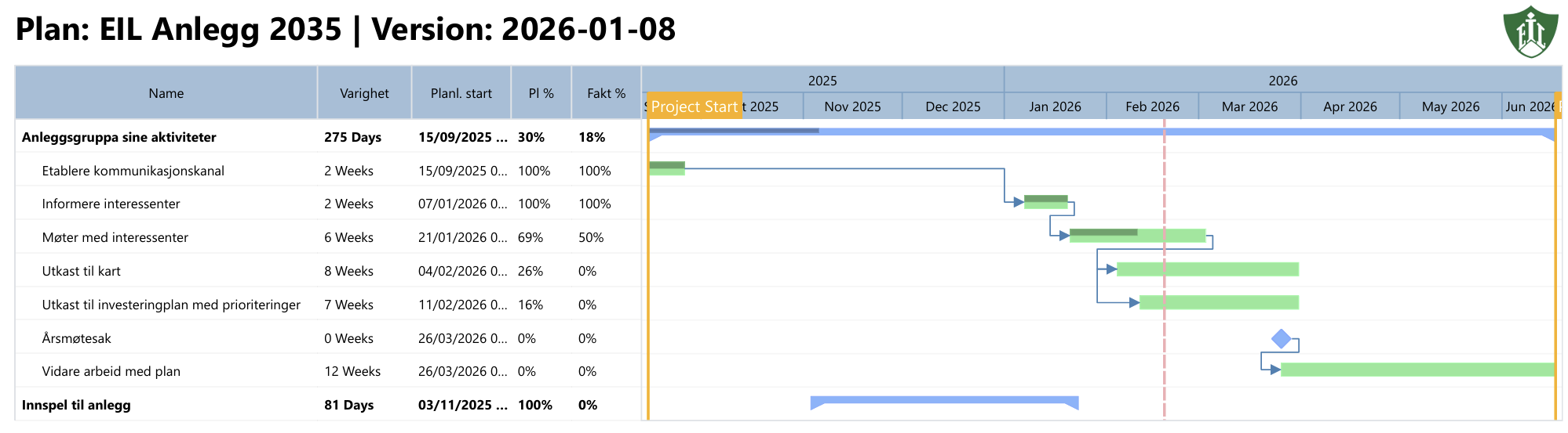 Årsmøtet 26. mars kjem for tidleg. Dessutan er dette eit stort og viktig tema som fortener eit eige møte. Det vil difor bli kalla inn til eit ekstraordinært møte om anlegg. Det vil bli gitt ein status for arbeidet på årsmøtet.
